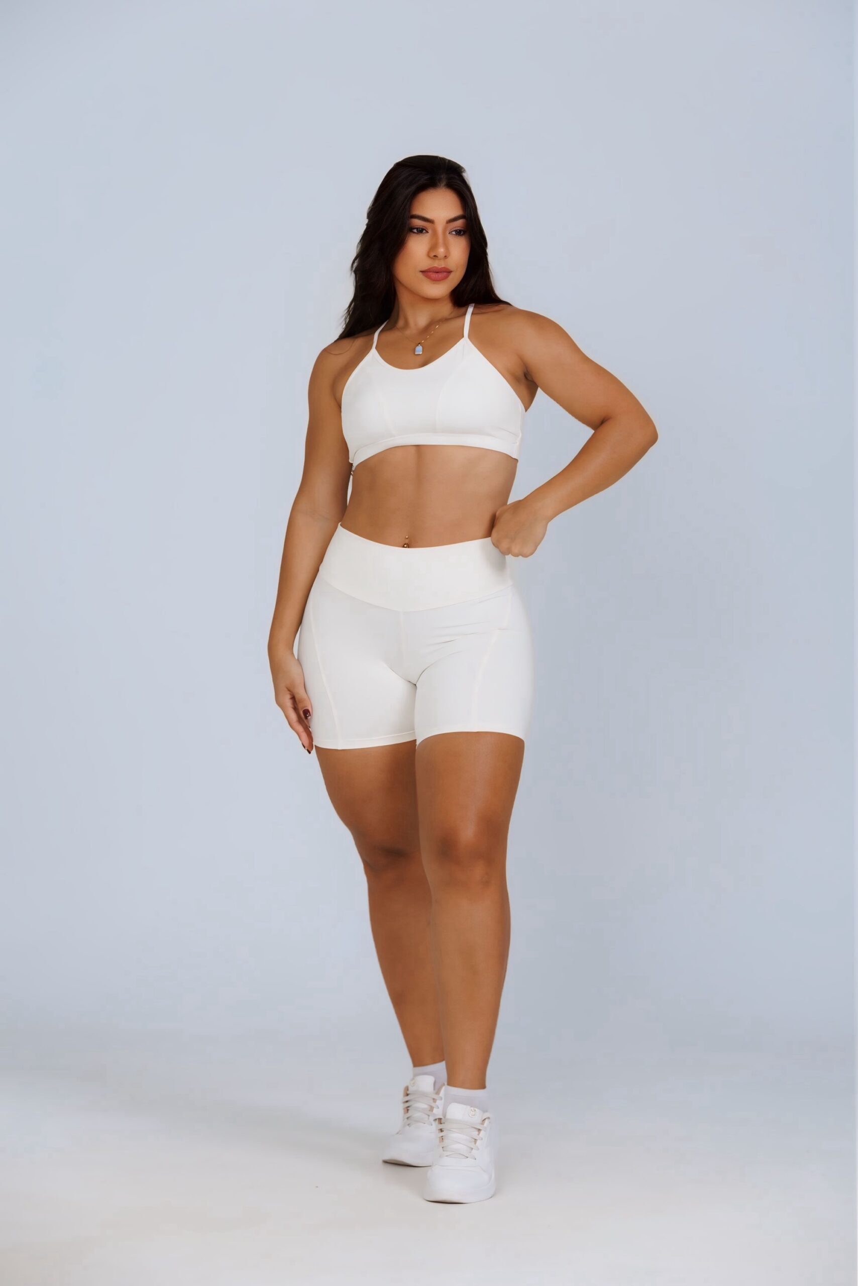 Conjunto Short Com Recortes e Top Costas Cruzadas OffWhite