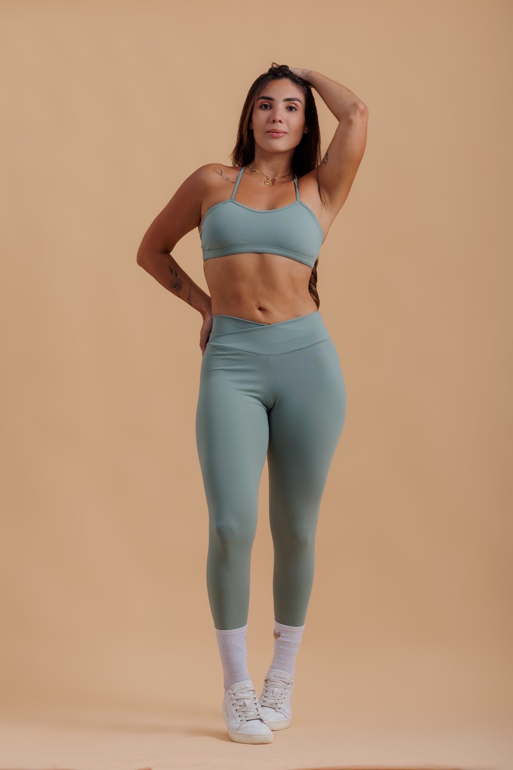 Conjunto Legging Cos Cruzado + Top Verde Matte