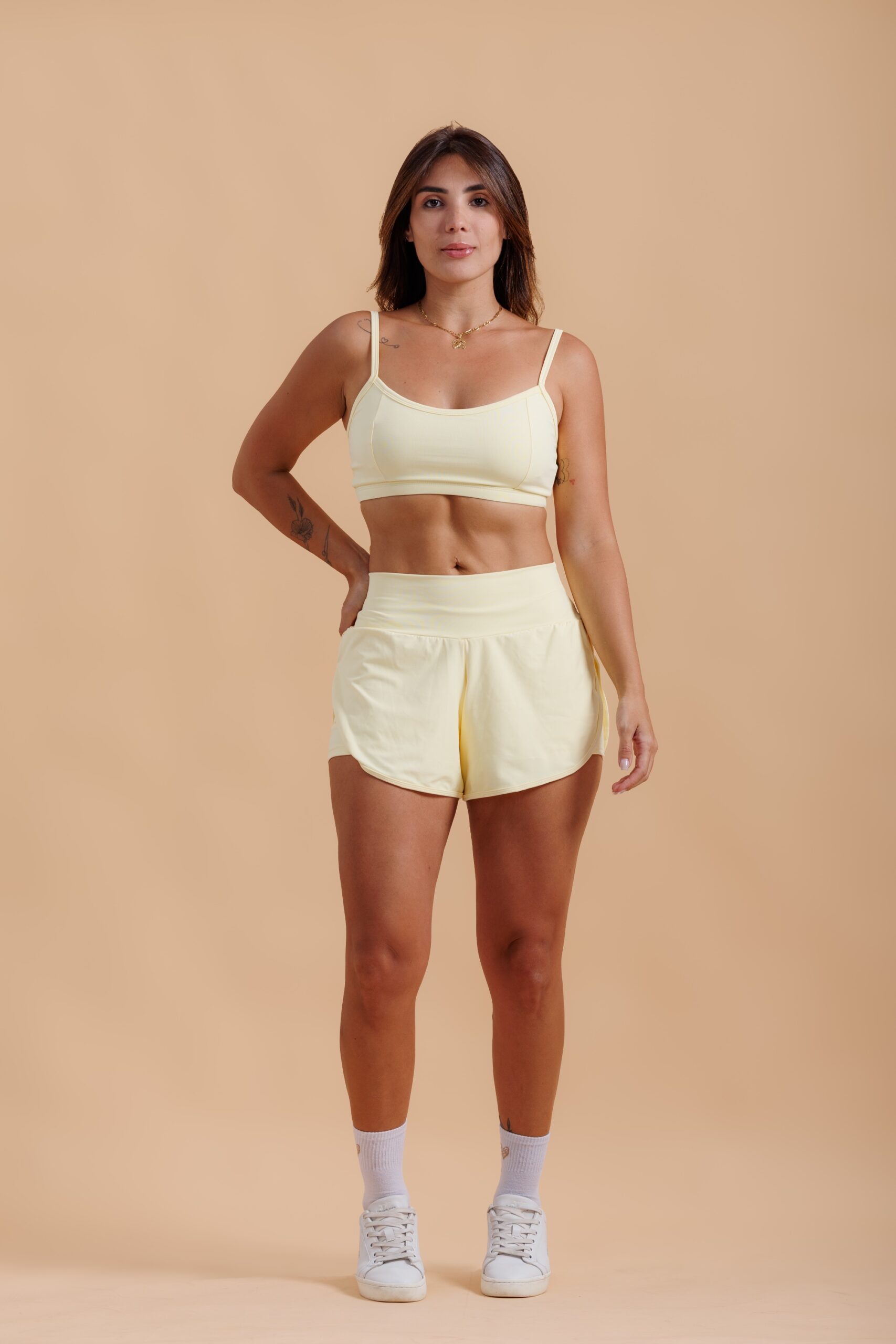 Conjunto Short Duplo de Corrida confeccionado em de com gramatura leve e textura suave, possui cós anatômico para maior sustentação.