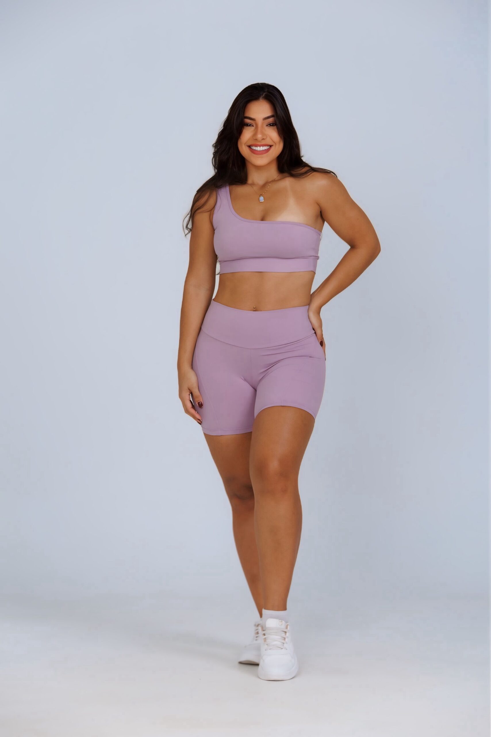 Conjunto de Short com Recorte Top Um Ombro Lilás